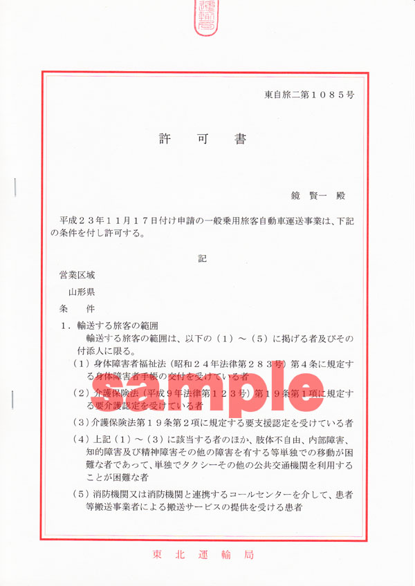 山形市で開業する介護タクシー走蔵(はしぞう)の開業申請に始まり