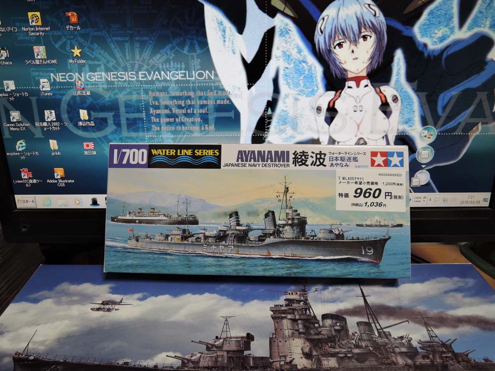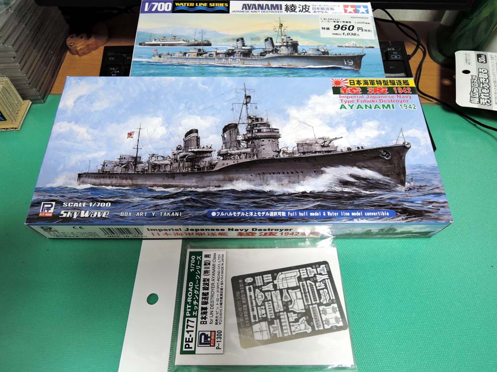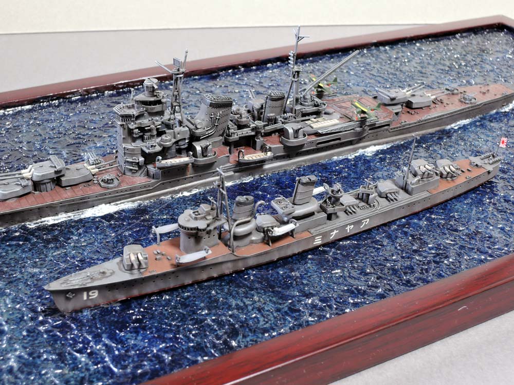 完成したタミヤ製「綾波」を重巡洋艦「羽黒」と