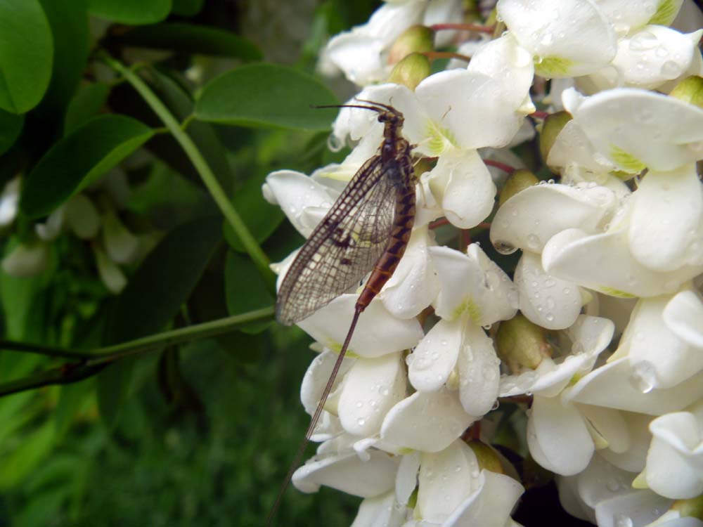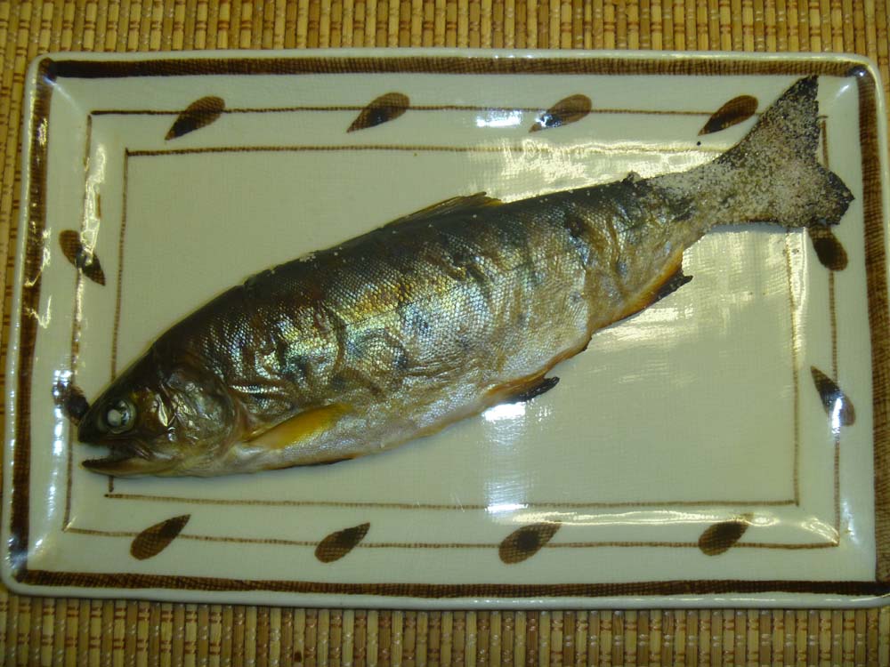 渓流5号針にブドウ虫をつけての1投目。狙った