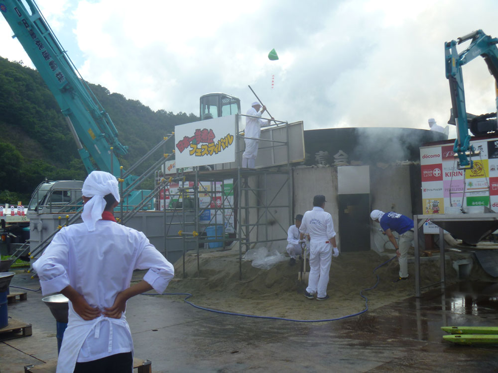 所定の位置に収まった芋煮の大鍋。