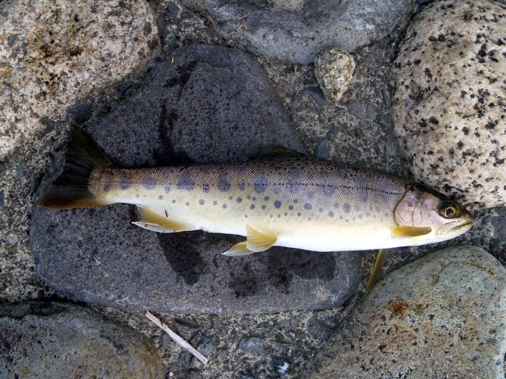 23cmのヤマメだった。かなり体型は