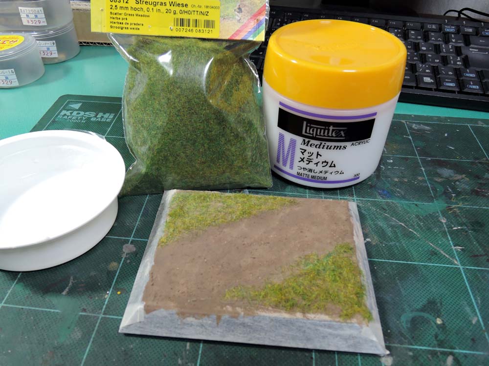 その上に、草素材をパラパラと蒔いていき