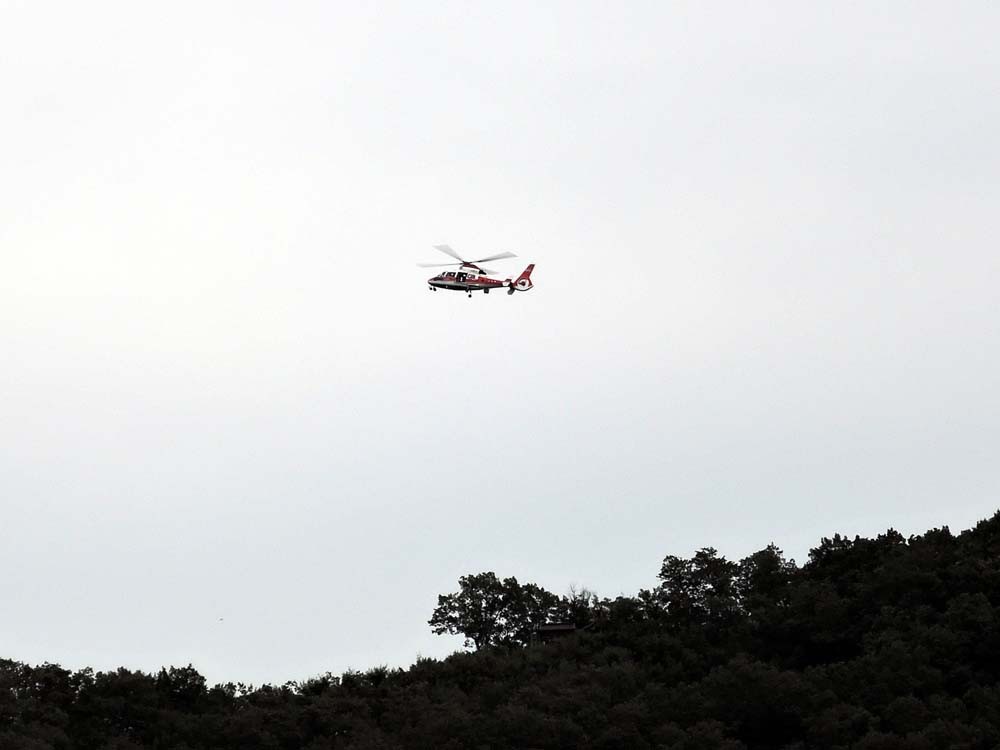 盃山(さかづきやま)の上で、ヘリがホバリング